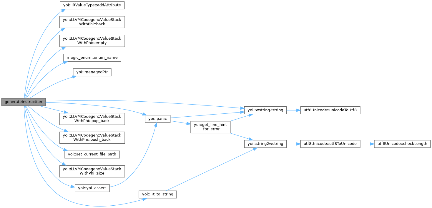 | void | generateInstruction (LLVMModuleContext &llvmModCtx, const IR &instr, yoi::indexT fromBlock, yoi::indexT toBlock) |