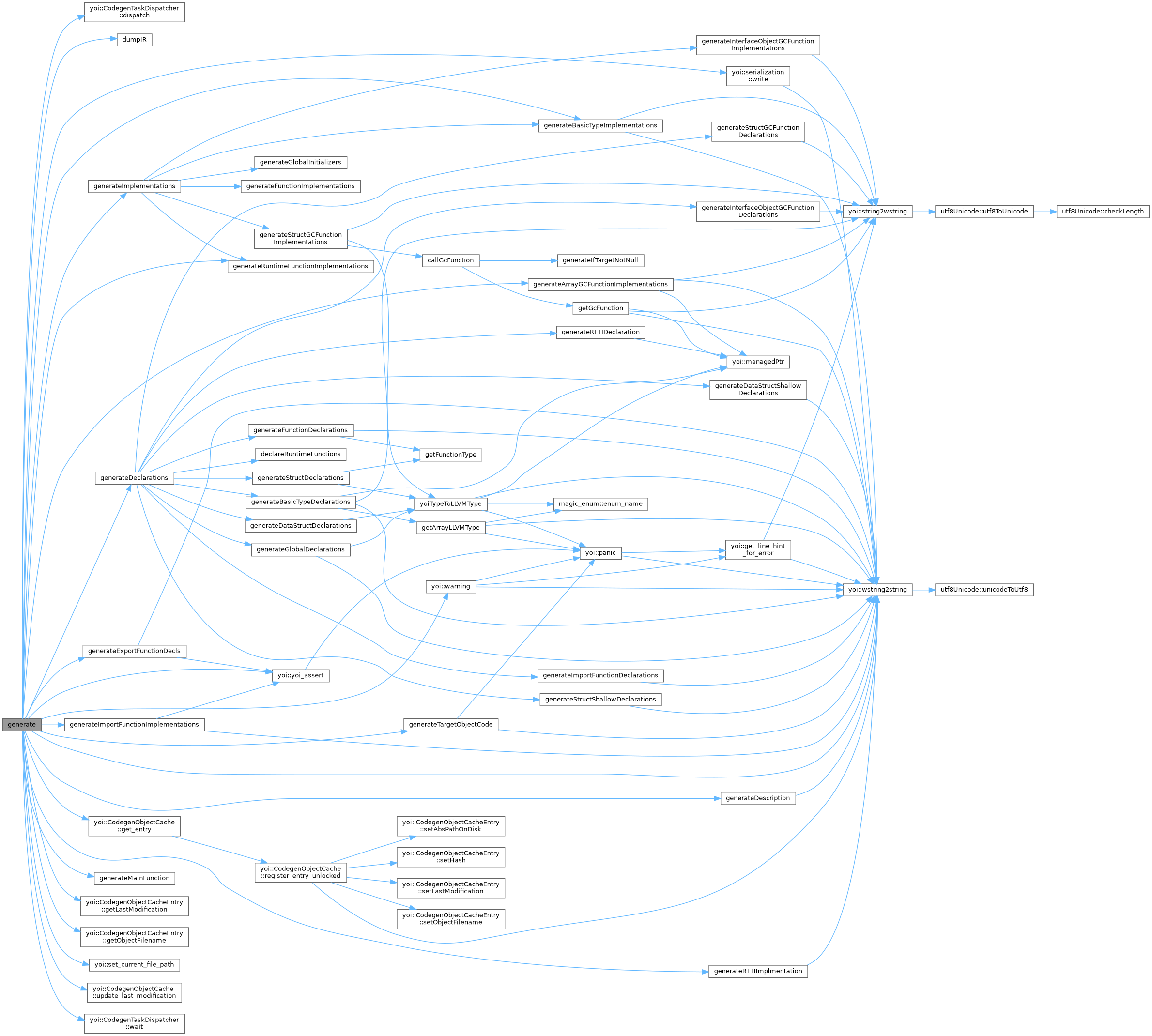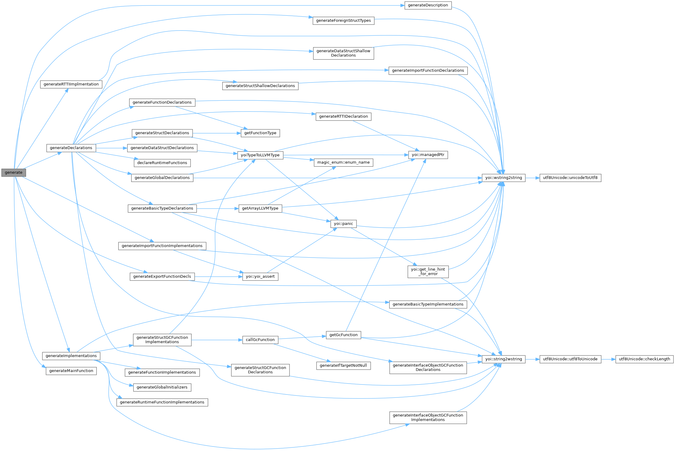 References LLVMCodegen::generateBasicTypeImplementations(), LLVMCodegen::generateFunctionImplementations(), LLVMCodegen::generateGlobalInitializers(), LLVMCodegen::generateInterfaceObjectGCFunctionImplementations(), LLVMCodegen::generateRuntimeFunctionImplementations(), and LLVMCodegen::generateStructGCFunctionImplementations().