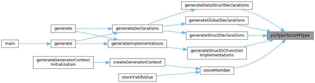 | llvm::Type * | yoiTypeToLLVMType (LLVMModuleContext &llvmModCtx, const std::shared_ptr< IRValueType > &type, bool enforceForeignType=false) |
