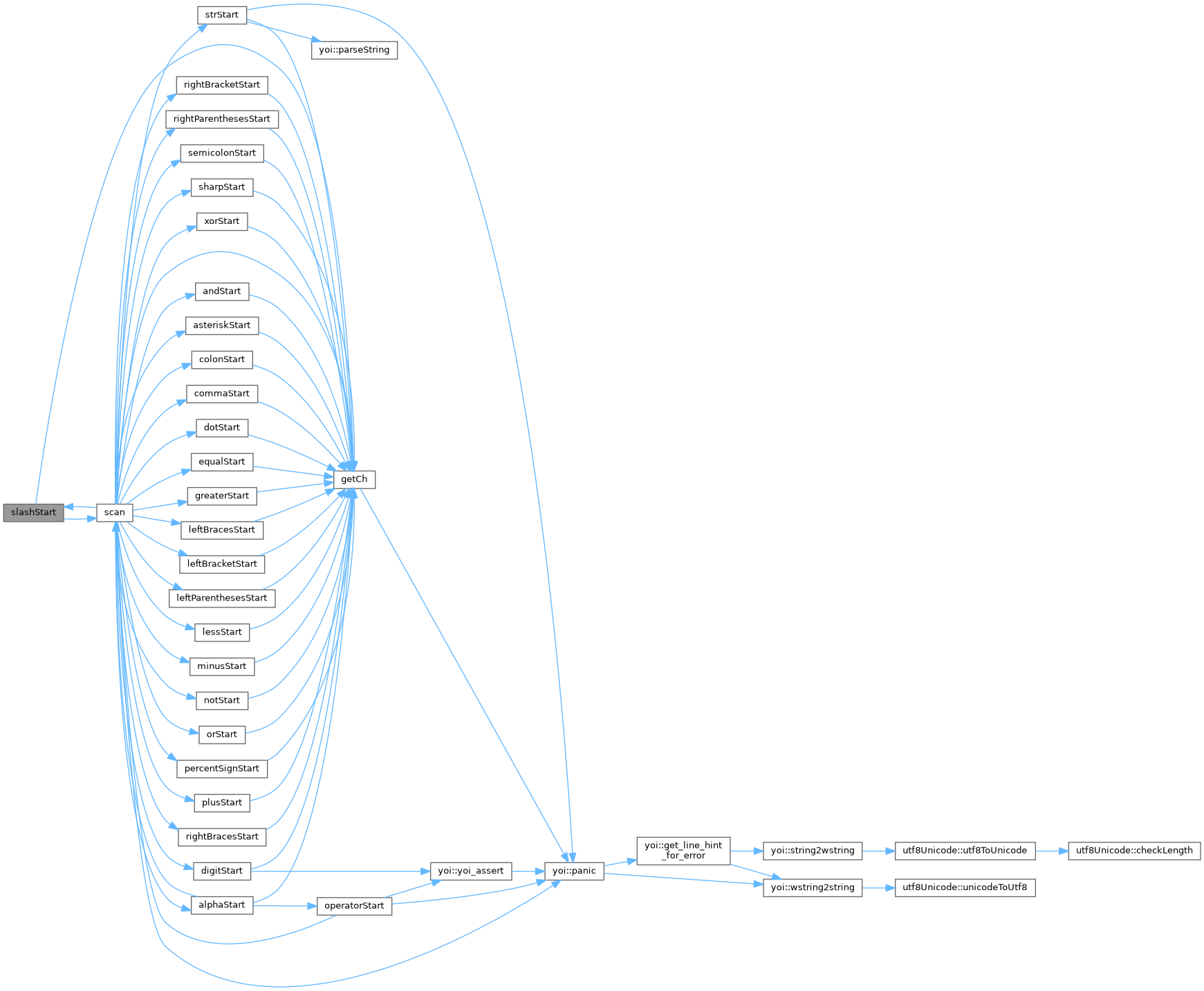 References lexer::alphaStart(), lexer::andStart(), lexer::asteriskStart(), lexer::col, lexer::colonStart(), lexer::commaStart(), lexer::curCh, lexer::curToken, lexer::digitStart(), lexer::dotStart(), lexer::token::eof, lexer::equalStart(), lexer::getCh(), lexer::greaterStart(), lexer::leftBracesStart(), lexer::leftBracketStart(), lexer::leftParenthesesStart(), lexer::lessStart(), lexer::line, lexer::minusStart(), lexer::notStart(), lexer::orStart(), yoi::panic(), lexer::percentSignStart(), lexer::plusStart(), lexer::rightBracesStart(), lexer::rightBracketStart(), lexer::rightParenthesesStart(), lexer::semicolonStart(), lexer::sharpStart(), lexer::slashStart(), lexer::strStart(), and lexer::xorStart().