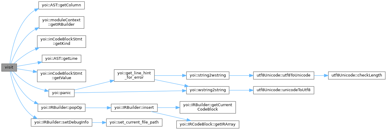 | void visit | ( | yoi::inCodeBlockStmt * | inCodeBlockStmt | ) |