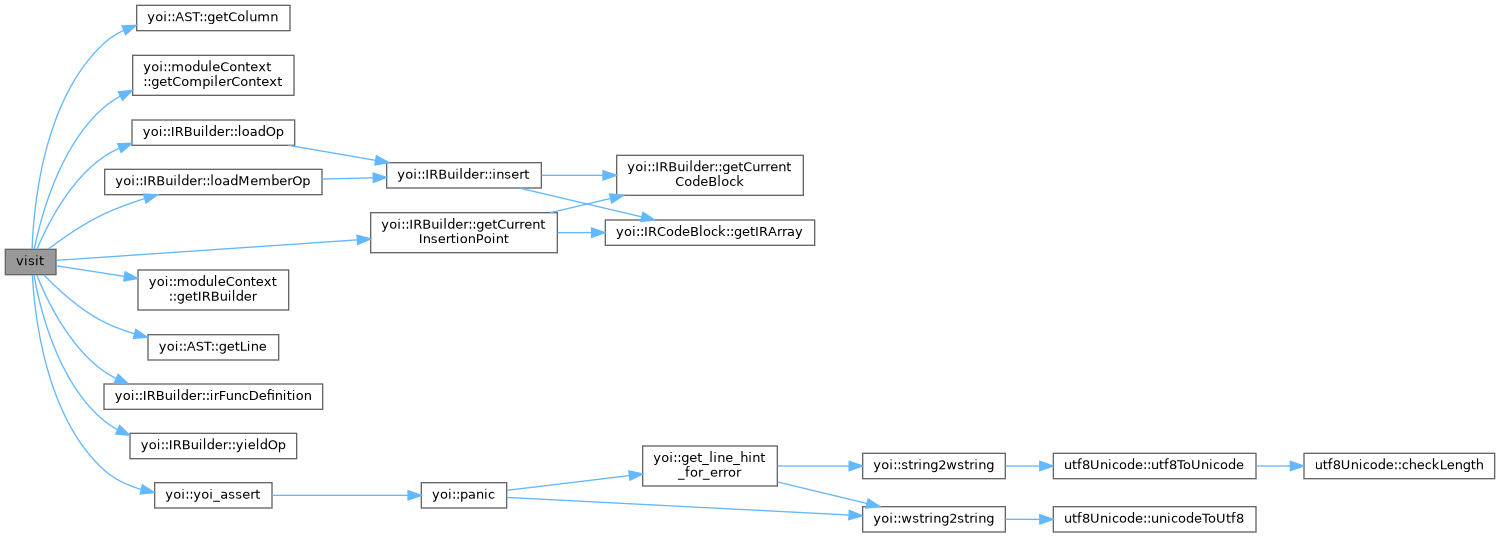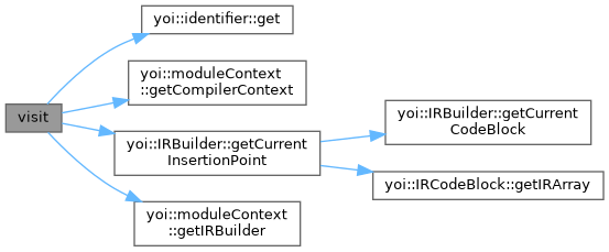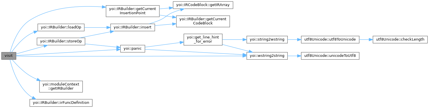 References lexer::token::col, IRBuilder::getCurrentInsertionPoint(), moduleContext::getIRBuilder(), IRBuilder::irFuncDefinition(), lexer::token::line, IRBuilder::loadOp(), identifier::node, yoi::panic(), IRBuilder::storeOp(), lexer::token::strVal, and yoi::wstring2string().