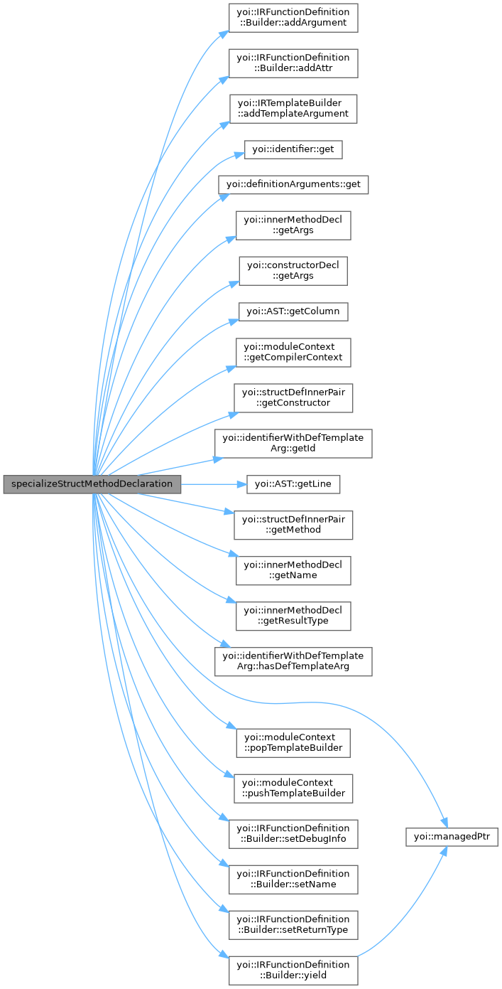 References IRFunctionDefinition::Builder::addArgument(), IRFunctionDefinition::Builder::addAttr(), IRStructDefinition::Builder::addField(), IRStructDefinition::Builder::addMethod(), IRStructDefinition::Builder::addTemplateMethodDecl(), IRFunctionDefinition::Builder::attrs, identifier::get(), moduleContext::getCompilerContext(), IRBuilder::getCurrentInsertionPoint(), structDefStmt::getId(), identifierWithDefTemplateArg::getId(), structDefInner::getInner(), structDefStmt::getInner(), moduleContext::getIRBuilder(), identifierWithDefTemplateArg::hasDefTemplateArg(), structDefStmt::id, yoi::managedPtr(), IRFunctionDefinition::Builder::setDebugInfo(), IRFunctionDefinition::Builder::setName(), IRStructDefinition::Builder::setName(), IRFunctionDefinition::Builder::setReturnType(), lexer::token::strVal, IRFunctionDefinition::Builder::yield(), and IRStructDefinition::Builder::yield().