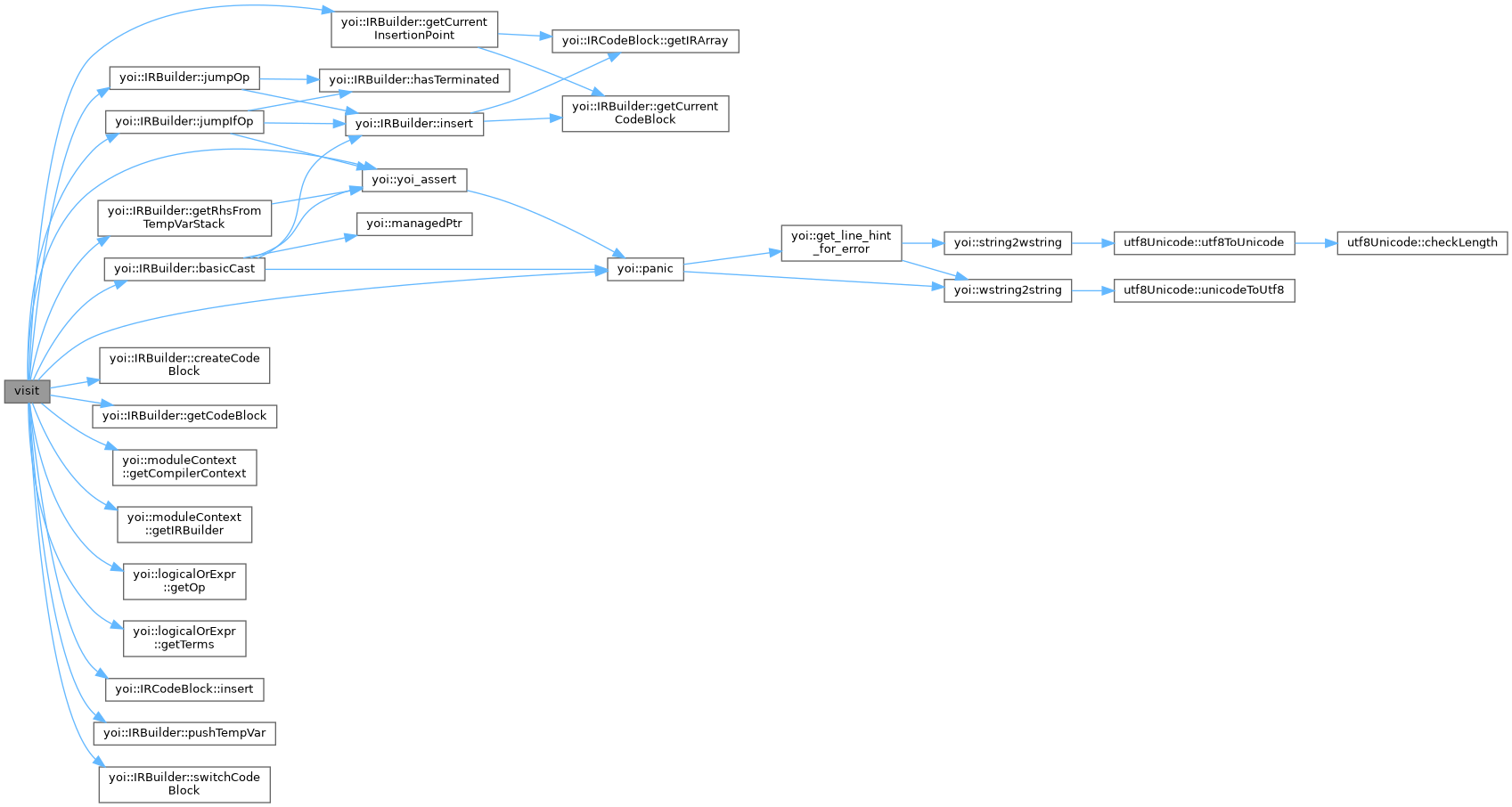 References IRBuilder::basicCast(), IRBuilder::createCodeBlock(), IRBuilder::getCodeBlock(), moduleContext::getCompilerContext(), IRBuilder::getCurrentInsertionPoint(), moduleContext::getIRBuilder(), logicalOrExpr::getOp(), IRBuilder::getRhsFromTempVarStack(), logicalOrExpr::getTerms(), IRCodeBlock::insert(), IRBuilder::jumpIfOp(), IRBuilder::jumpOp(), yoi::panic(), IRBuilder::pushTempVar(), IRBuilder::switchCodeBlock(), and yoi::yoi_assert().
