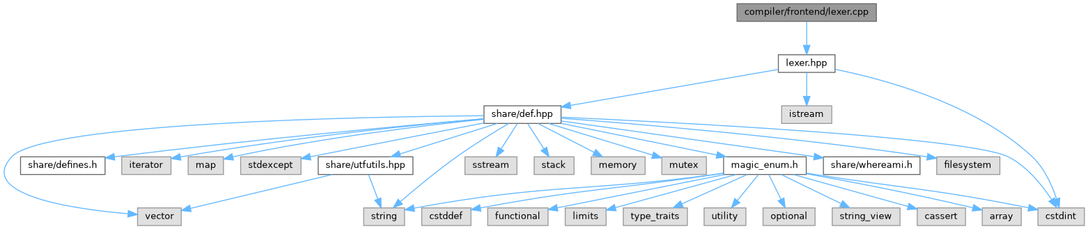 Include dependency graph for lexer.cpp: