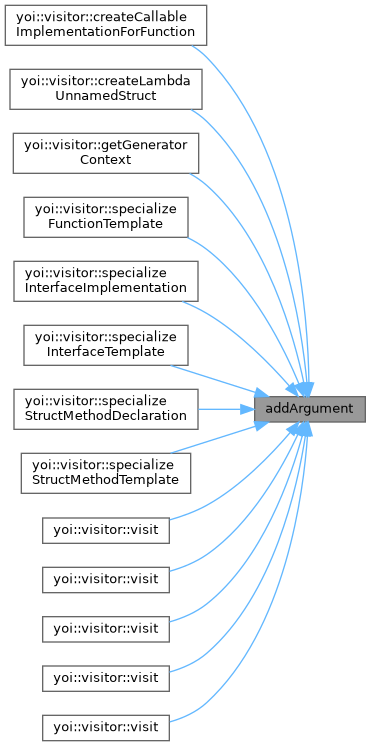 | Builder & | addArgument (const yoi::wstr &argumentName, const std::shared_ptr< IRValueType > &argumentType) |